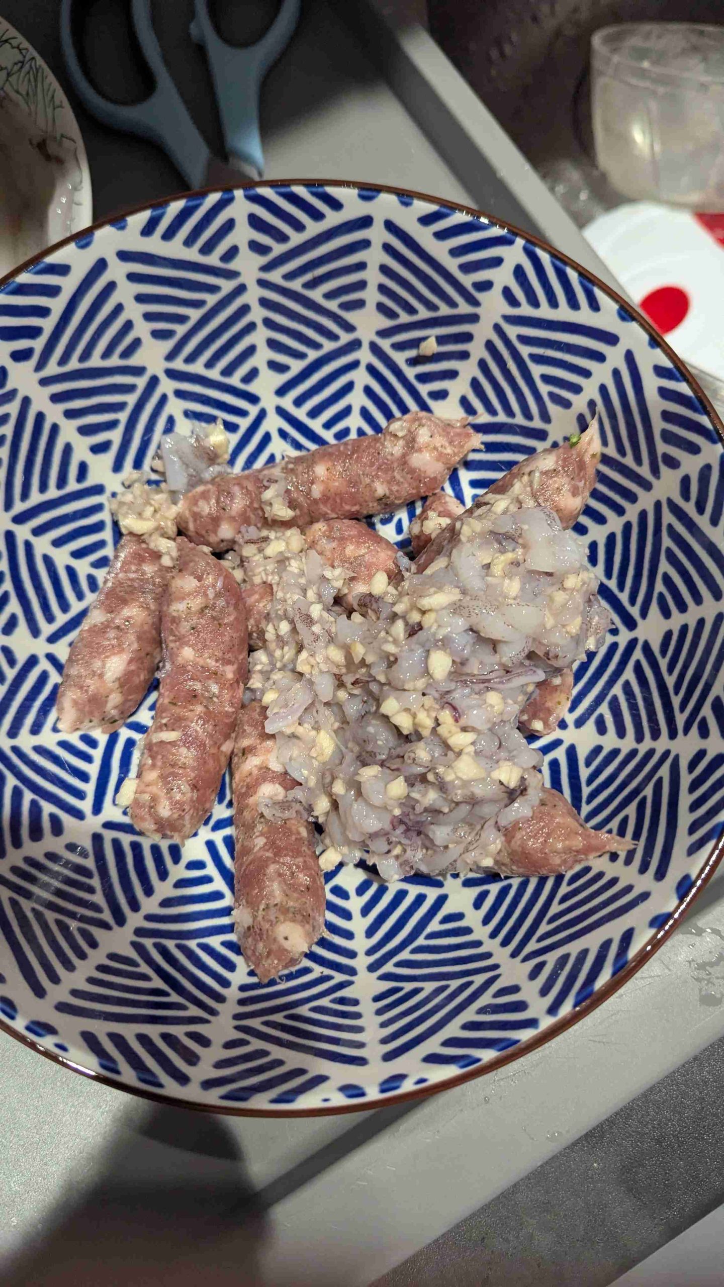 Je mixe les tentacules avec de la chair à farcir, c’est-à-dire de la saucisse et sel et poivre.