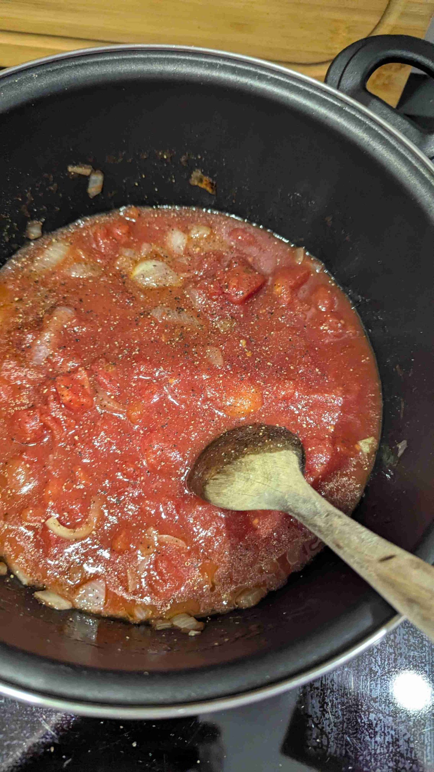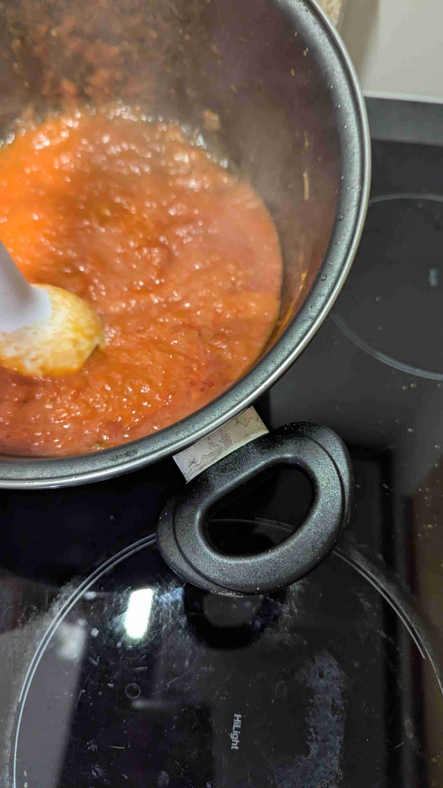 Tu prépares une sauce avec de l’oignon et de la sauce tomate et de l’ail et de la poudre de perlimpinpin de paella. Les épices à paella. Les meilleurs sont les Spigoles