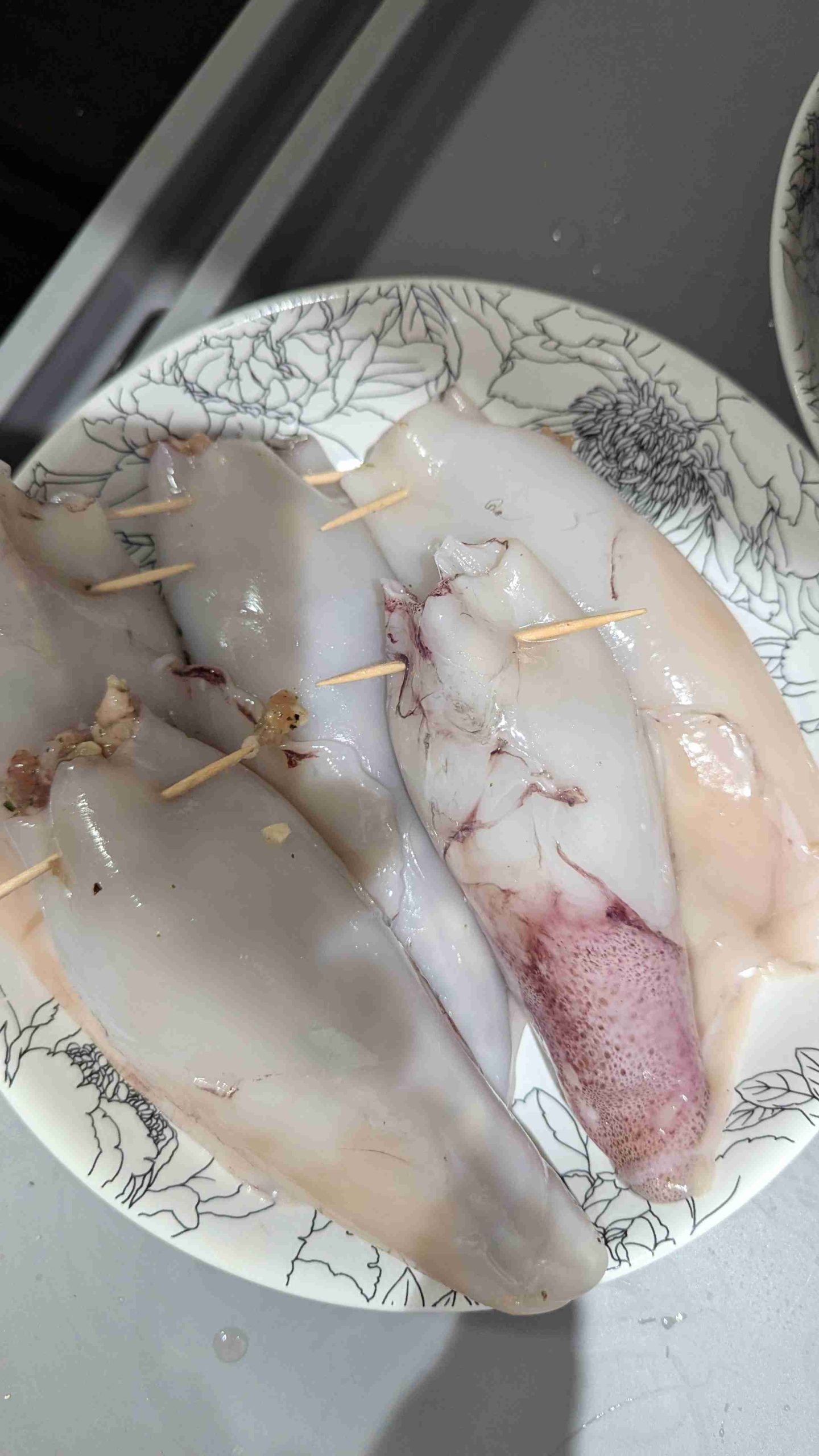 Les tentacules la chair à farcir avec un jaune d’œuf. Sel, poivre herbes de Provence.